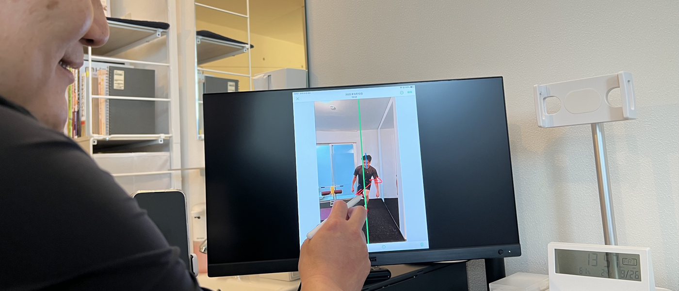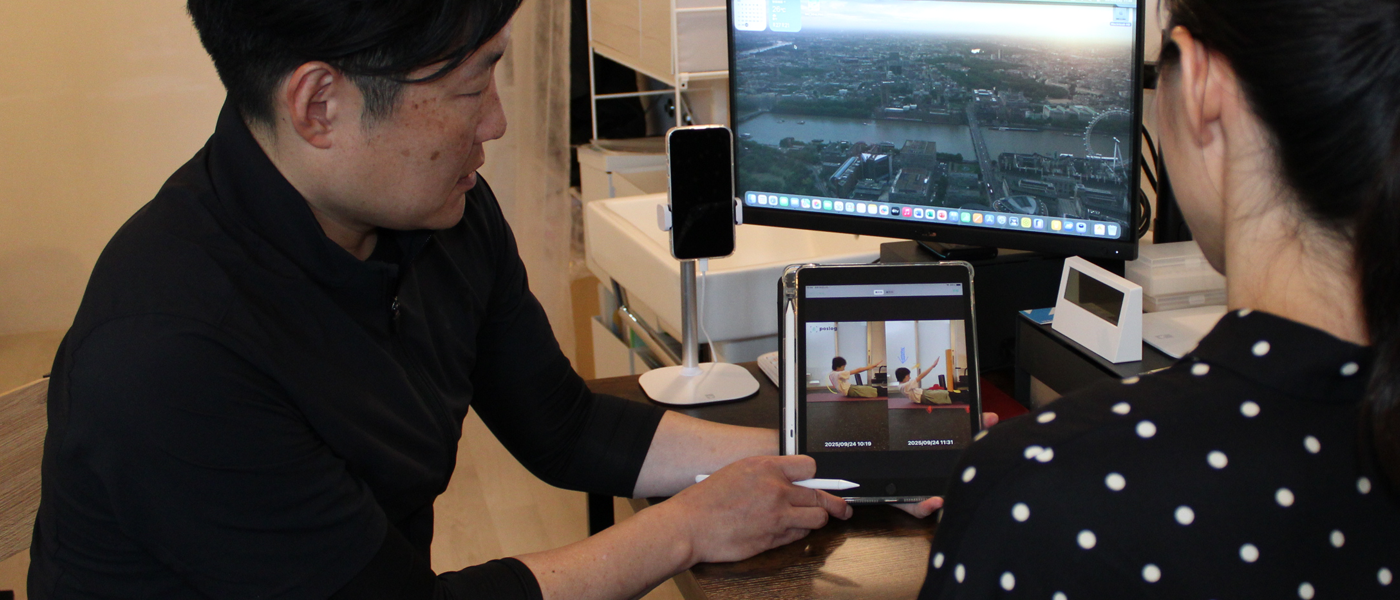 身体の歪みや筋の状態、関節の動きを徒手や動画分析ツールで痛み、悩みの原因を特定します。